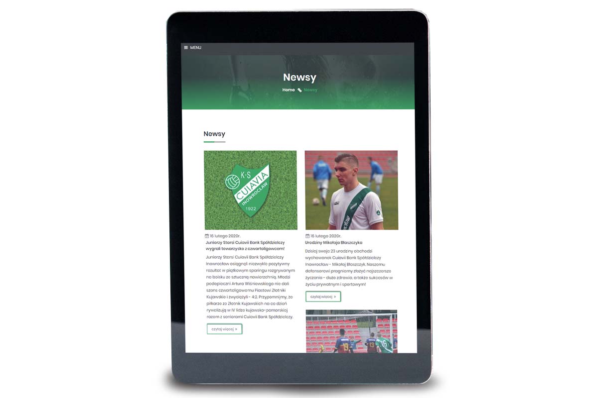 Cuiavia Inowrocław to już trzeci klub piłkarski, który w ostatnim czasie skorzystał z naszej dedykowanej oferty. Również i tu zastosowaliśmy automatyzację wszędzie tam, gdzie było to możliwe. Wszystkie wyniki meczy, terminarze i tabele dla poszczególnych zespołów, co dwie godziny aktualizują się - ku wielkiej uciesze administratorów strony - "same" :) Pozostałe informacje wprowadzane są przez redaktorów strony za pomocą naszego autorskiego, stworzonego z myślą o klubach piłkarskich, łatwego w obsłudze systemu CMS.